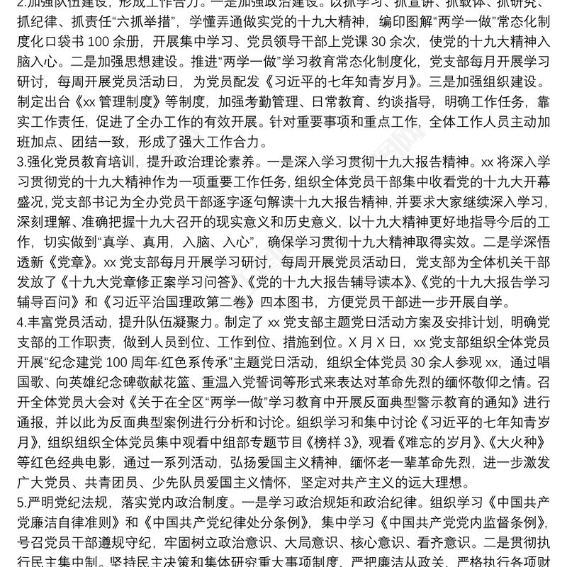 2021黨支部上半年紀檢監察工作總結2021黨支部上半年黨史教育工作總結2022年度黨支部書記推動落實黨風廉政建設主體責任述責述廉報告2021工作專班工作總結2022藍色扁平大氣工作總結年終總結工作匯2021小學黨支部黨史學習前階段工作總結機關黨支部2022年度機關黨建工作計劃工作要點2022黨支部書記代表黨支部委員會向黨員大會報告工作2022黨支部建設提質增效自查報告黨支部書記推動落實黨風廉政建設主體責任述責述廉報告20222023學校黨建工作季度工作總結2023黨建文明工地創建工作總結2023團支部書記黨支部建設體會2023黨內主題教育應知應會知識點總結報告范文2023主題教育專題生活會總結報告范文