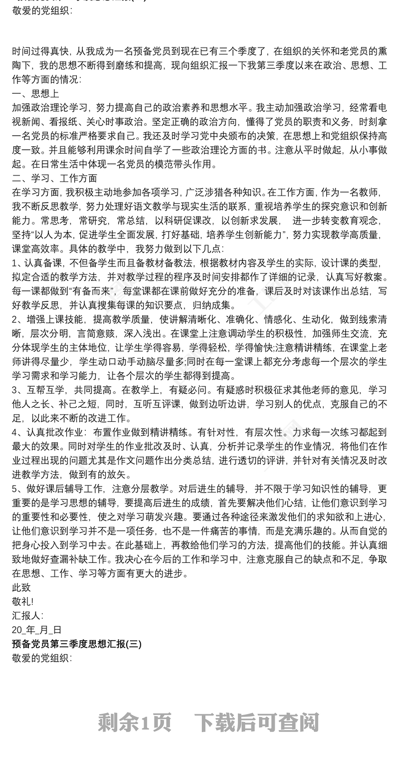 預備黨員20xx年第三季度思想匯報2020 Array