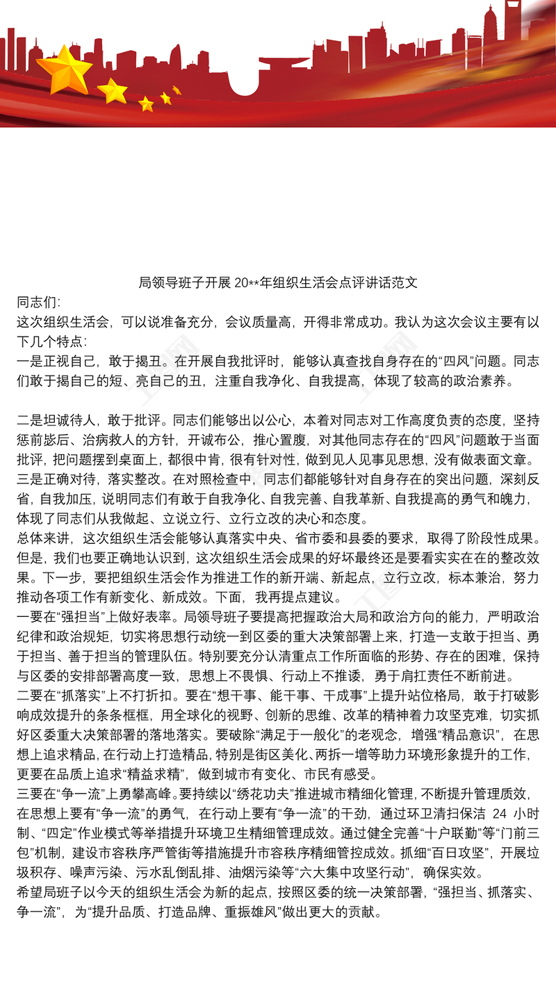 工圖網提供2021局領導班子開展20xx年組織生活會點評講話范文供會員免費下載。更多精彩黨課PPT素材,盡在工圖網。