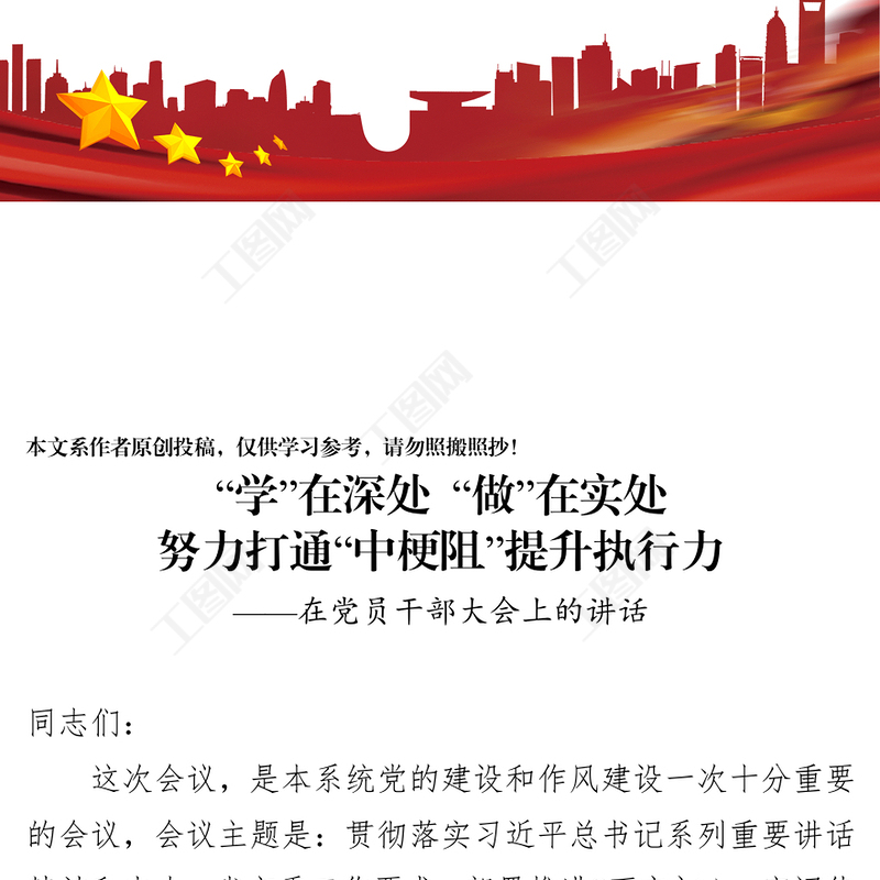 工圖網(wǎng)提供黨員大會講話在黨員干部大會上的講話供會員免費下載。更多精彩黨課PPT素材,盡在工圖網(wǎng)。