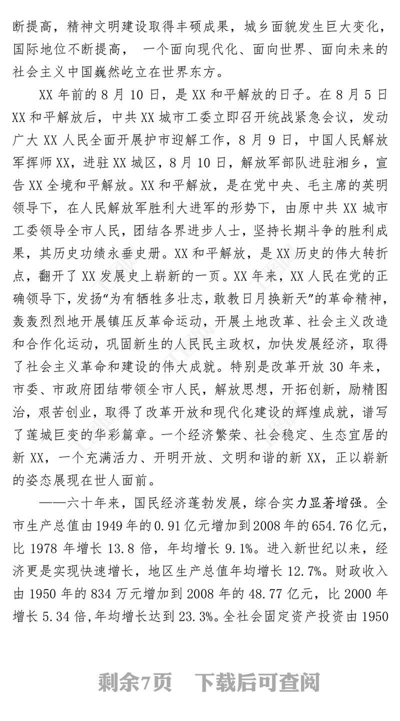 高舉中國特色社會主義偉大旗幟為建設(shè)繁榮民主文明和諧XX而努力奮斗