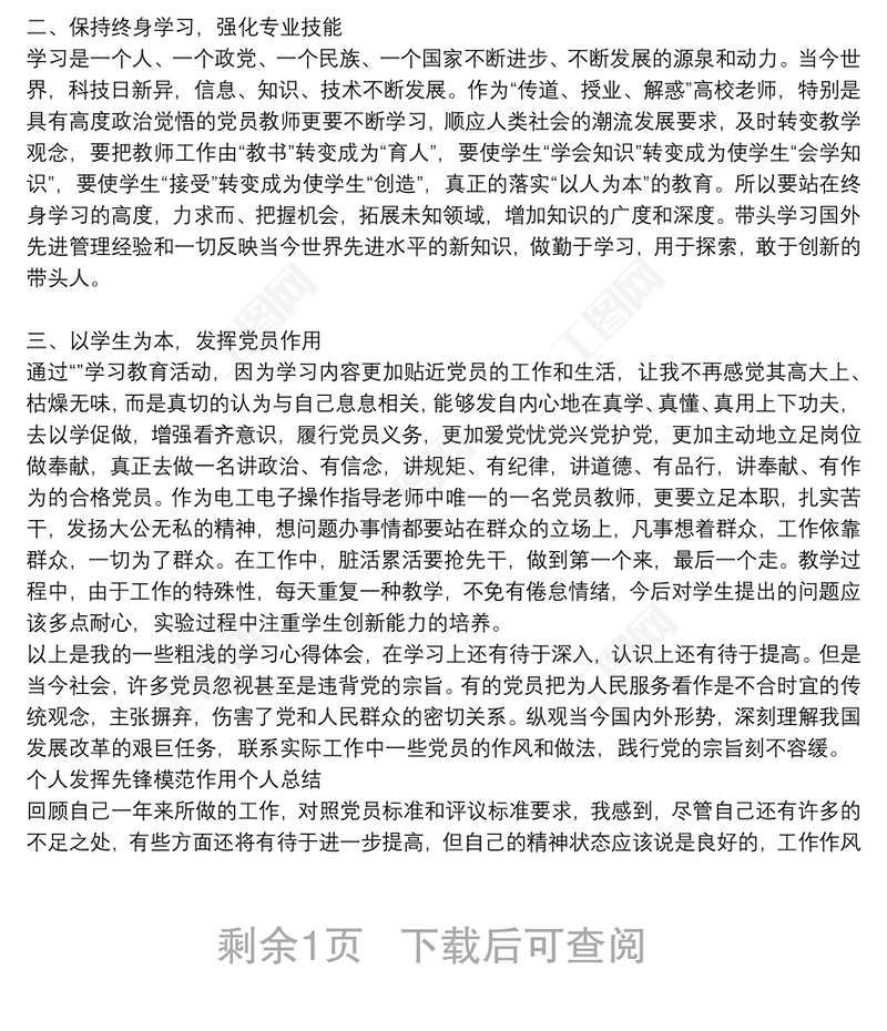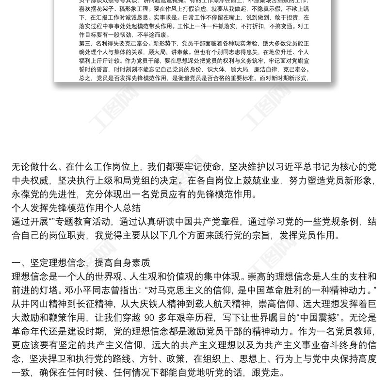 工圖網(wǎng)提供個人發(fā)揮先鋒模范作用個人總結(jié)供會員免費(fèi)下載。更多精彩黨課PPT素材,盡在工圖網(wǎng)。