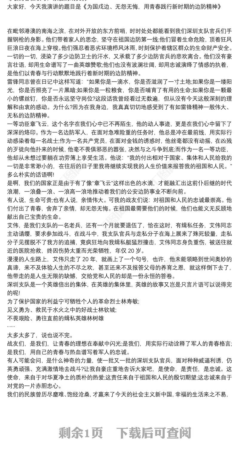 202120xx年部隊官兵學習衛國戍邊英雄事跡心得體會文本包含