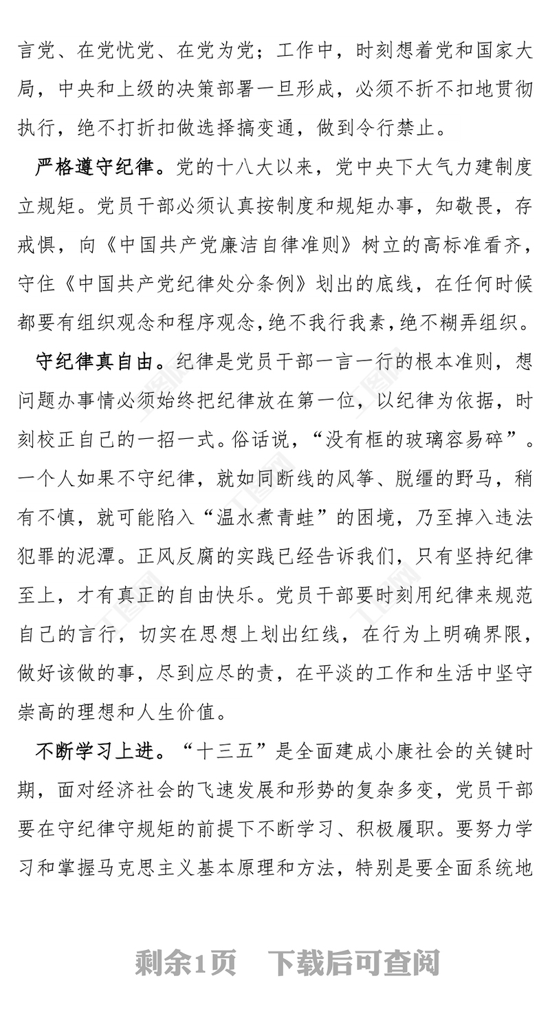 2021【領導講話】兩學一做第三階段堅守紀律底線提升黨員意識發言材料包含