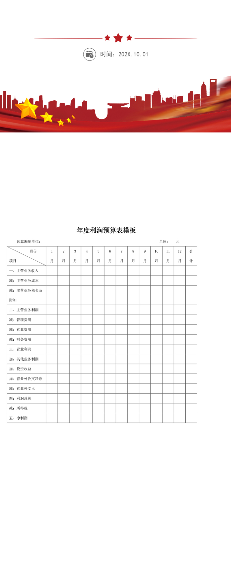 工圖網(wǎng)提供年度利潤預(yù)算表模板供會員免費下載。更多精彩黨課PPT素材,盡在工圖網(wǎng)。