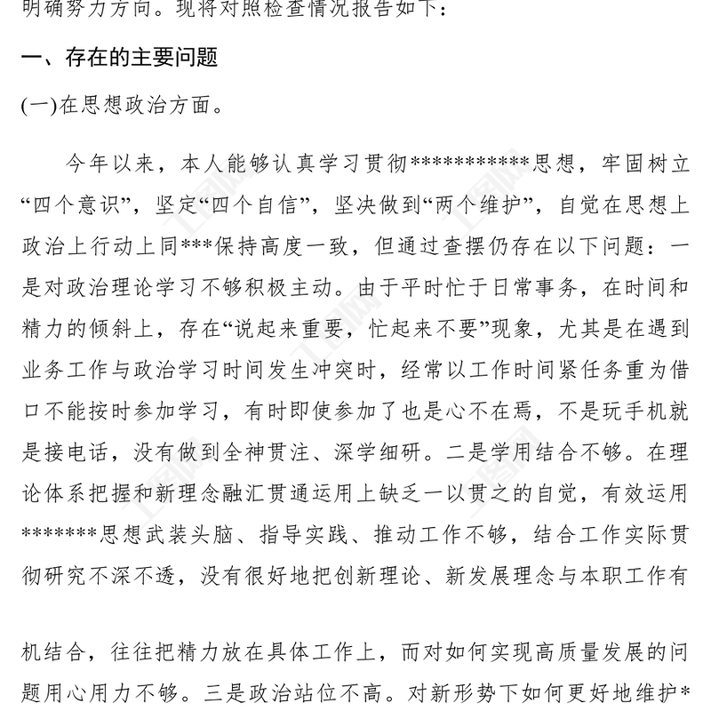 首頁 > WORD文檔 > 民主生活會 > 2021【領(lǐng)導(dǎo)講話】四個意識、四個自信、兩個維護民主生活會發(fā)言提綱.DOCX 【圖片、文字、動畫均可編輯】
