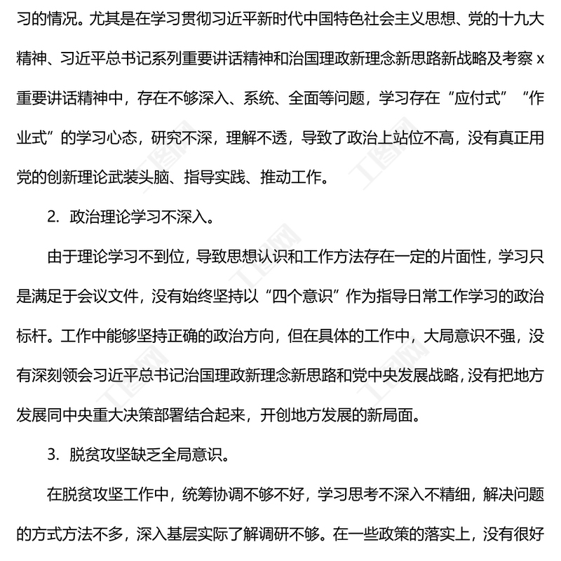 巡視巡查整改專題民主生活會(huì)個(gè)人對(duì)照檢查材料下載