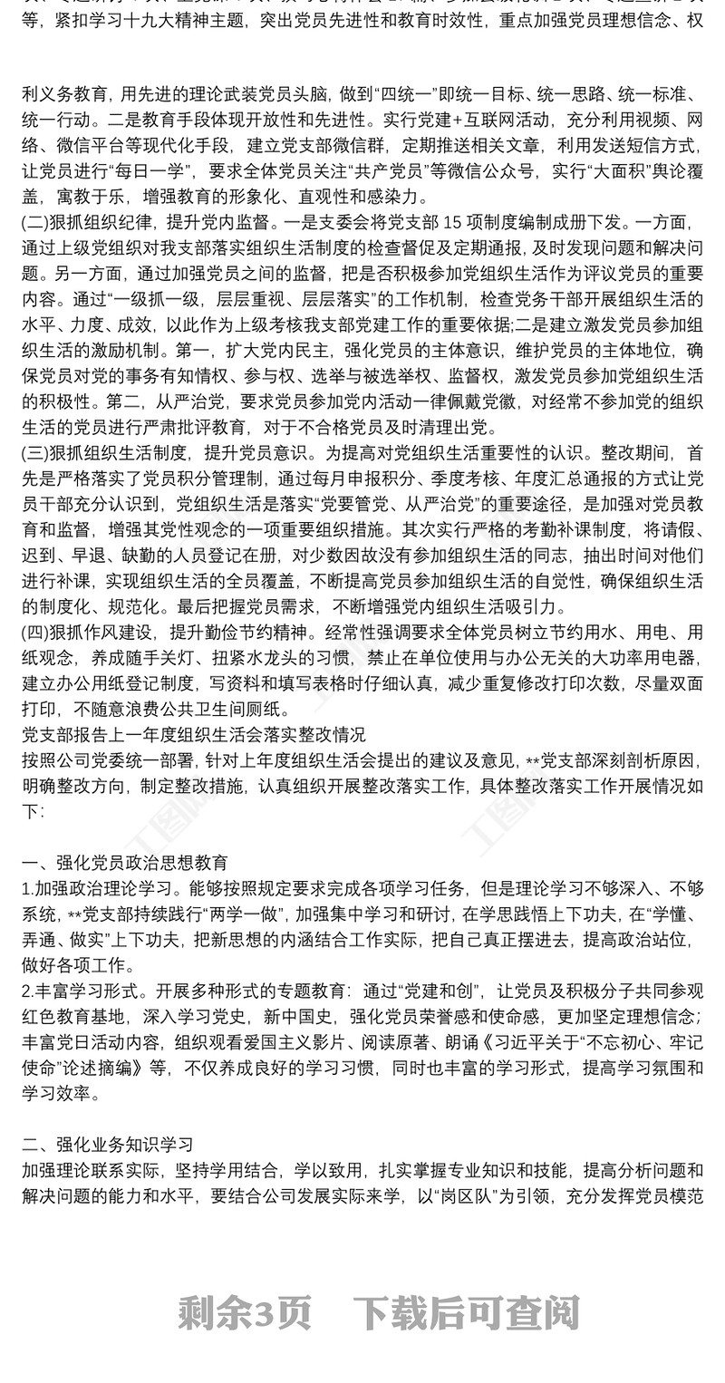 工圖網提供黨支部報告上一年度組織生活會落實整改情況供會員免費下載。更多精彩黨課PPT素材,盡在工圖網。