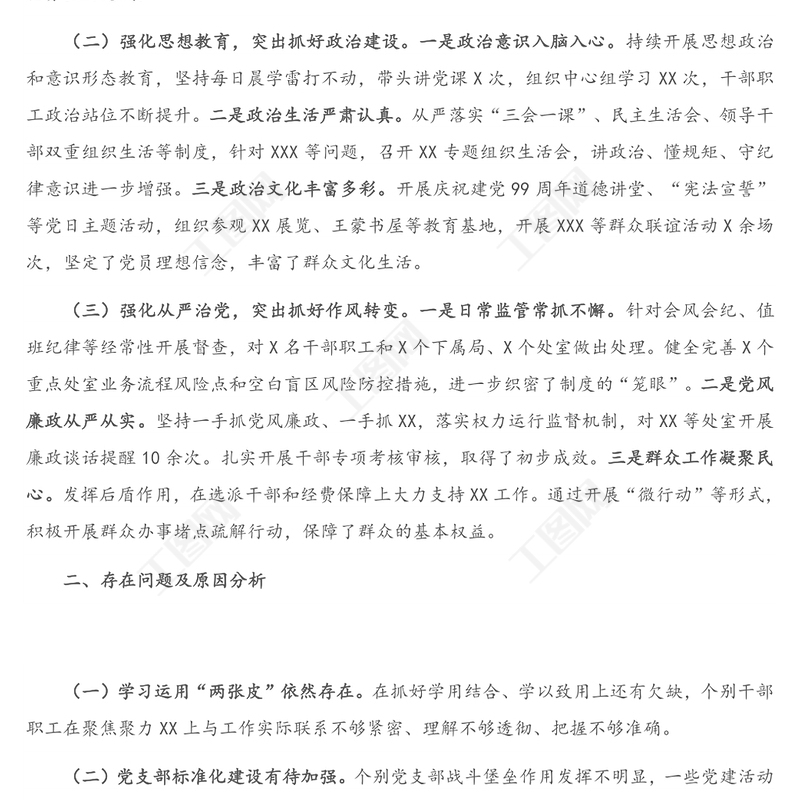 X市直部門黨委書記2020年度抓黨建工作述職報告包含