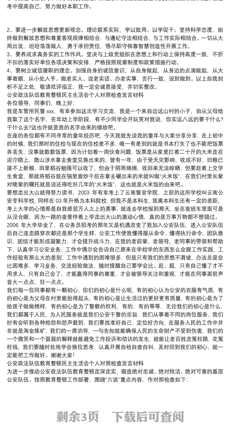工圖網(wǎng)提供公安政法隊伍教育整頓民主生活會個人對照檢查發(fā)言材料三篇供會員免費下載。更多精彩黨課PPT素材,盡在工圖網(wǎng)。
