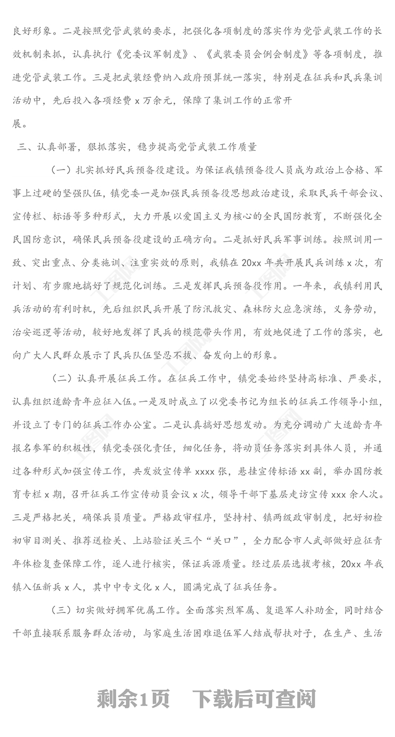 黨委書記黨管武裝工作述職報告包含