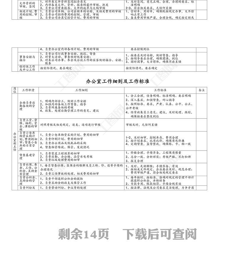 工圖網提供辦公室各工作崗位工作細則及工作標準一覽表(集團公司)供會員免費下載。更多精彩黨課PPT素材,盡在工圖網。