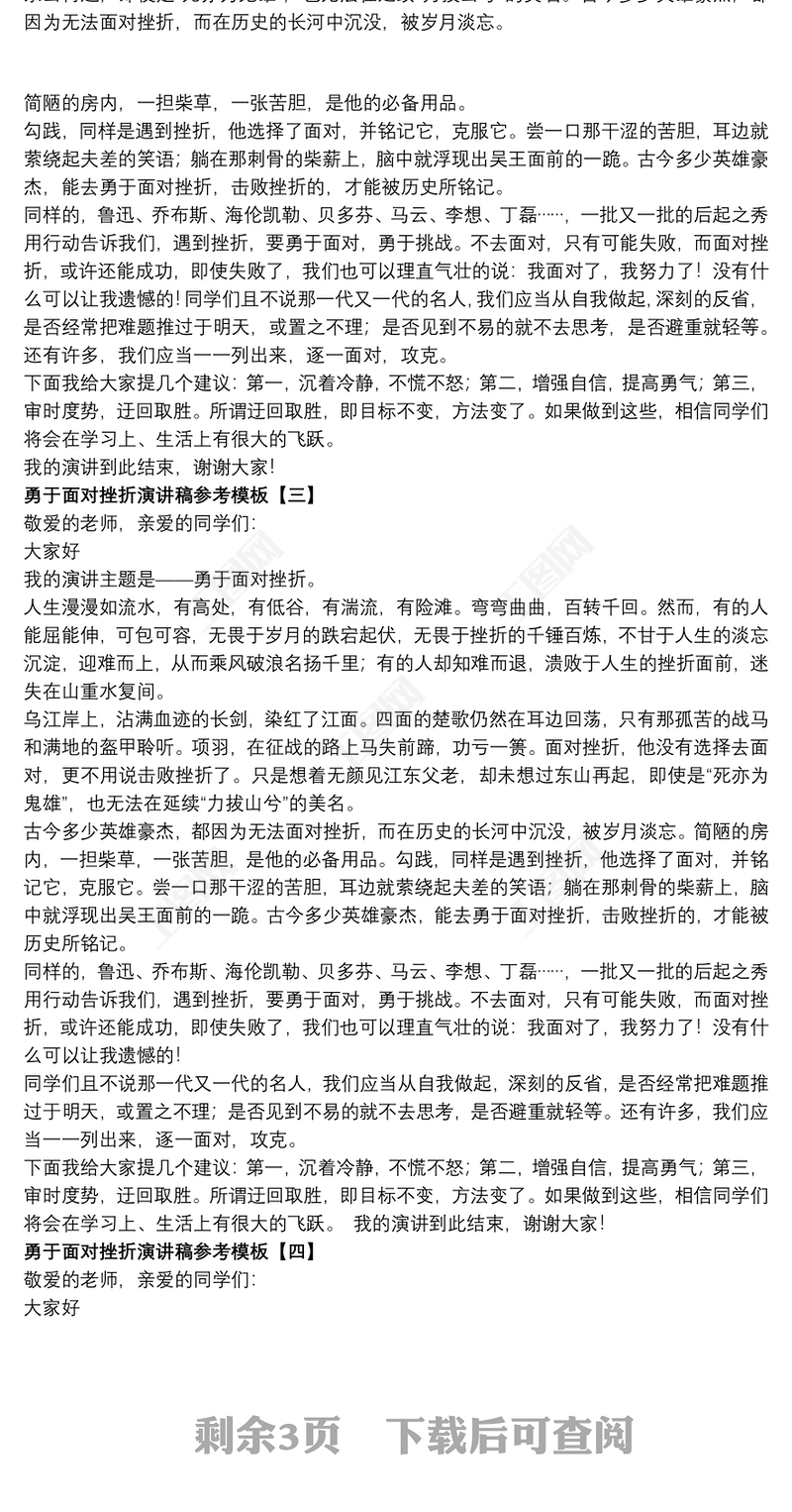 勇于面對挫折學生發言大全包含