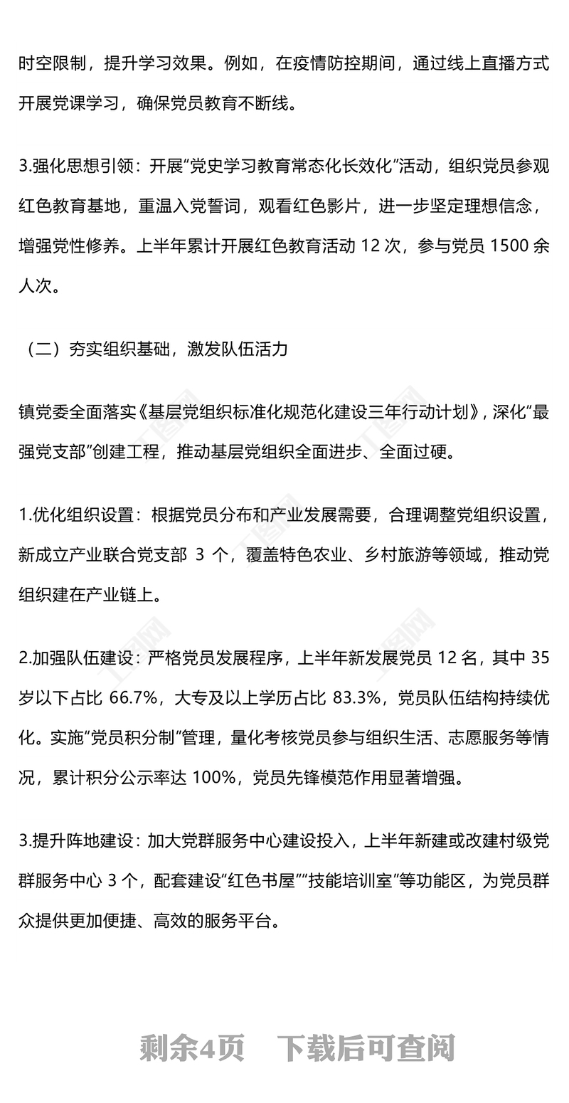 紅色大氣鎮(zhèn)黨委上半年黨建工作總結(jié)PPT模板(講稿)