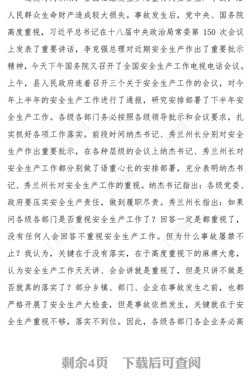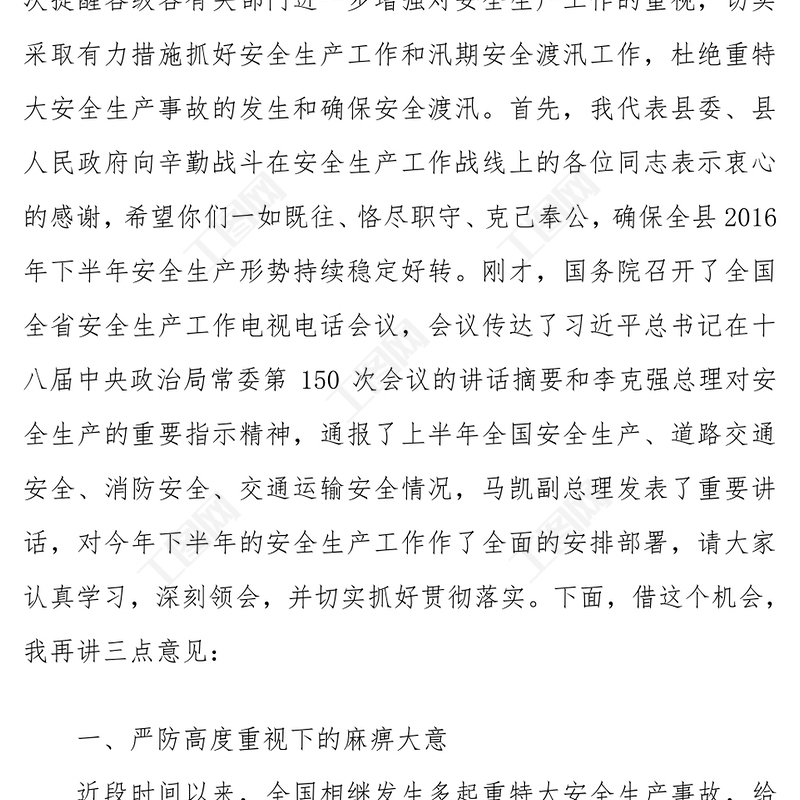 工圖網提供在全縣2016年上半年安全生產約談會議上的講話供會員免費下載。更多精彩黨課PPT素材,盡在工圖網。