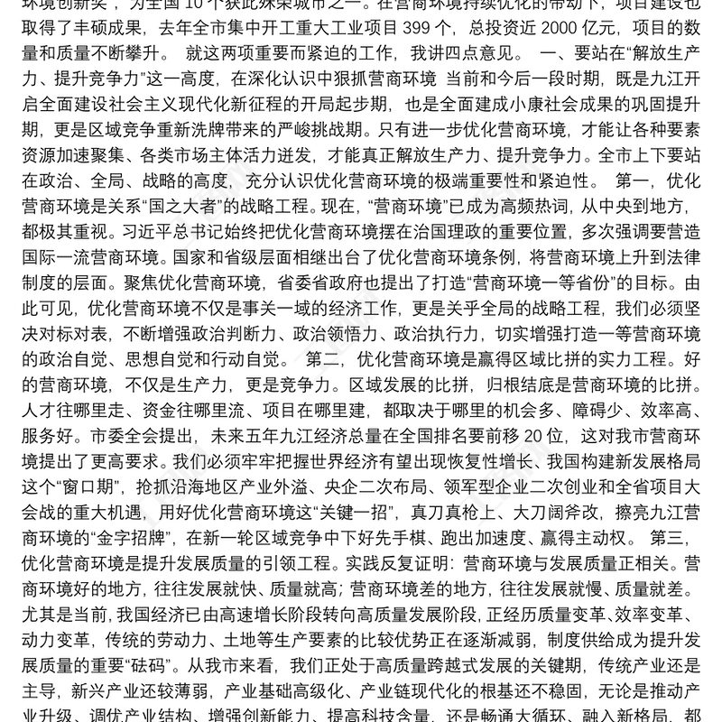 83.(江西省九江市)市委書記林彬楊在全市優(yōu)化營商環(huán)境暨“項目大會戰(zhàn)”動員大會上的講話 Array