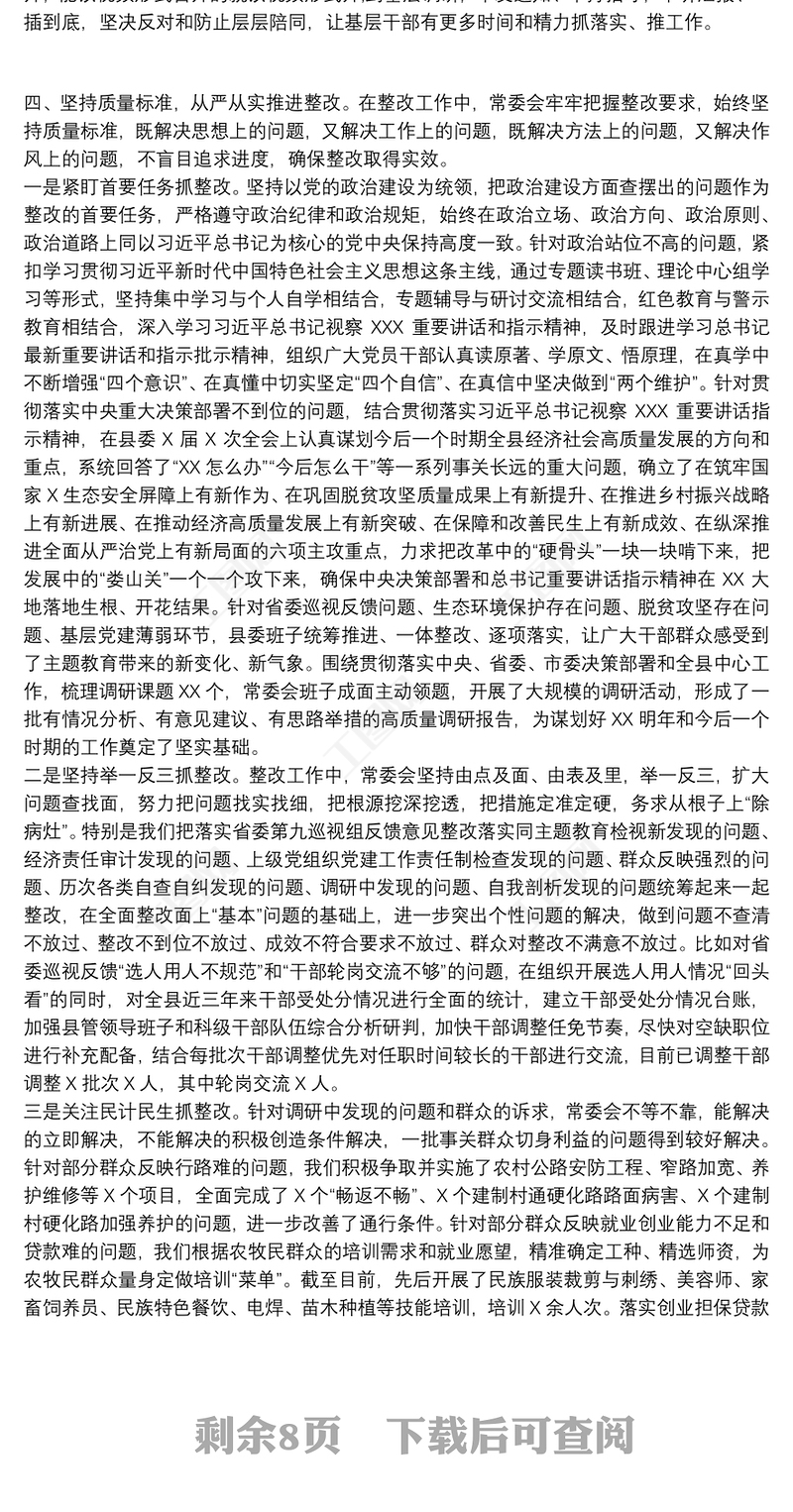 民主生活會 > 主題教育民主生活會整改情況匯報材料(縣級機關).DOCX