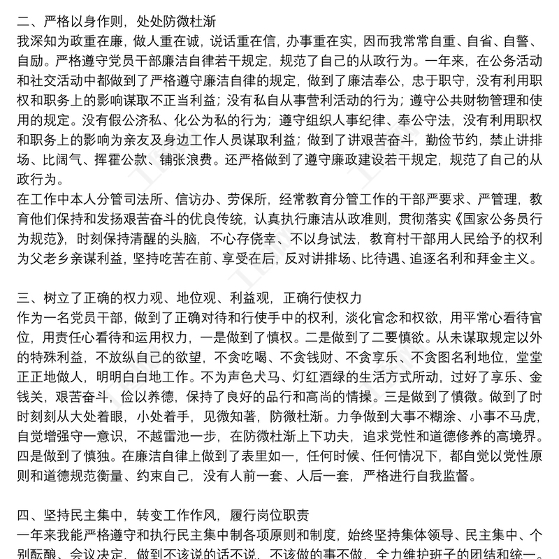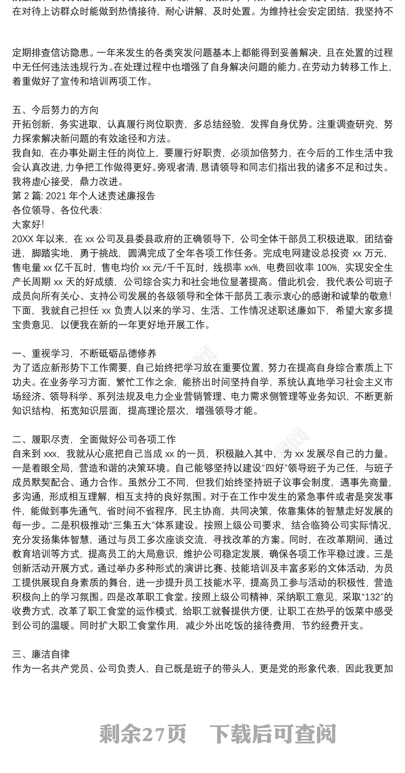 2021個人述責述廉報告范文模板包含
