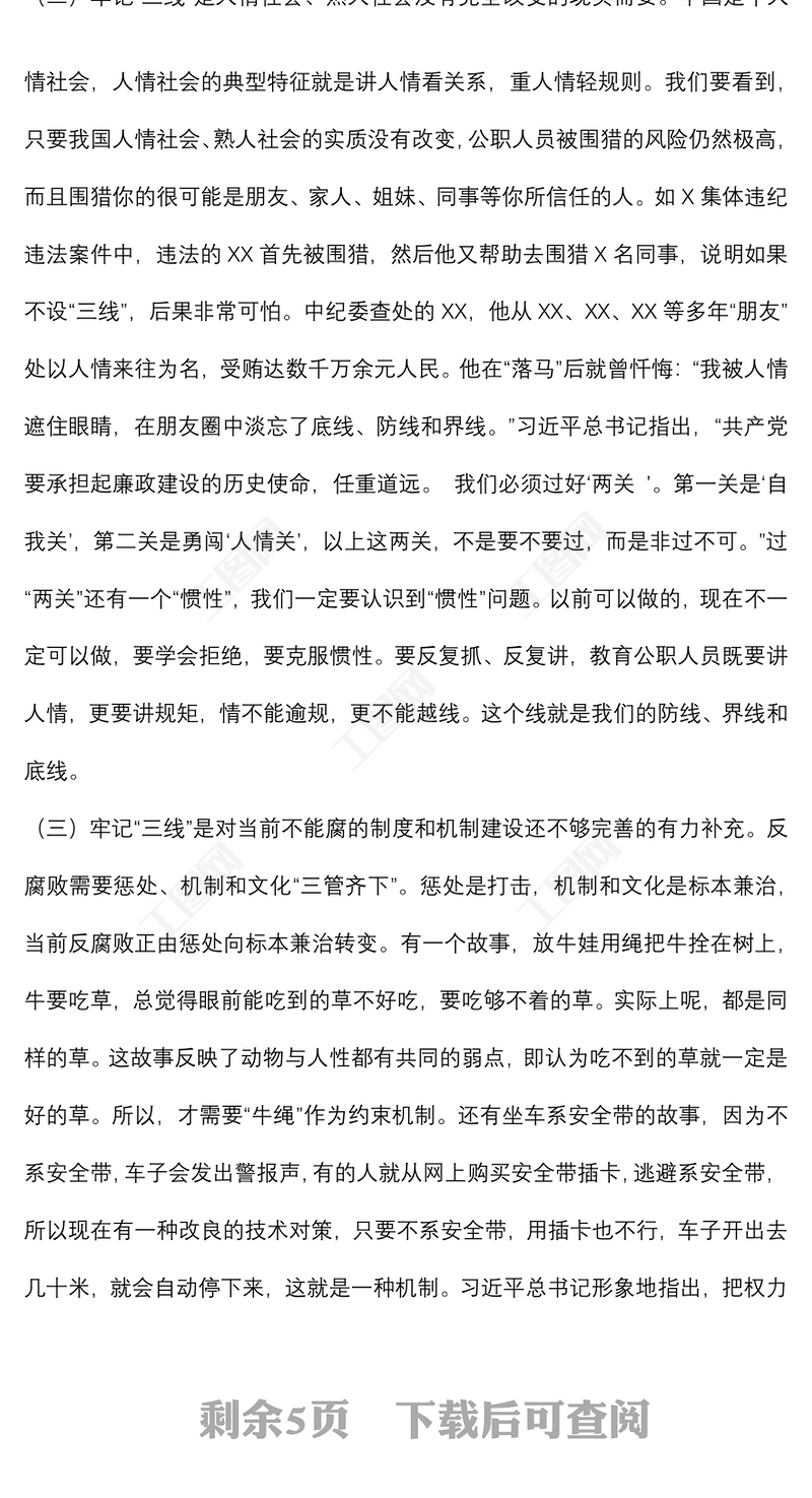 黨風廉政 > 廉政教育:牢記“三線” 遠離風險 嚴格遵守紀律和規矩.DOCX