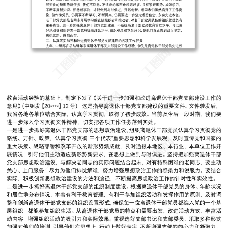 市委離退休干部黨工委專職副書記在全市離退休干部黨建工作交流會上的講話包含