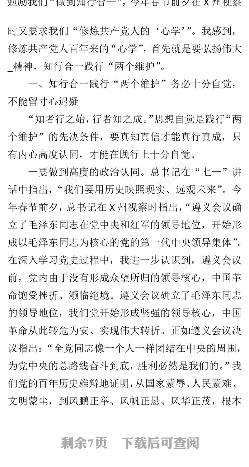 黨課講稿 > 弘揚偉大建黨精神,知行合一踐行“兩個維護”專題黨課.zip.DOCX