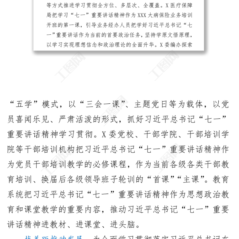 2021黨員學習貫徹“七一”重要講話精神情況匯報材料范文包含