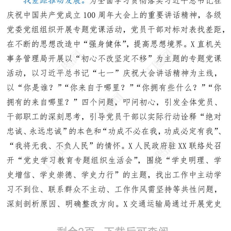 20xx年學習貫徹七一重要講話精神情況匯報材料范文包含