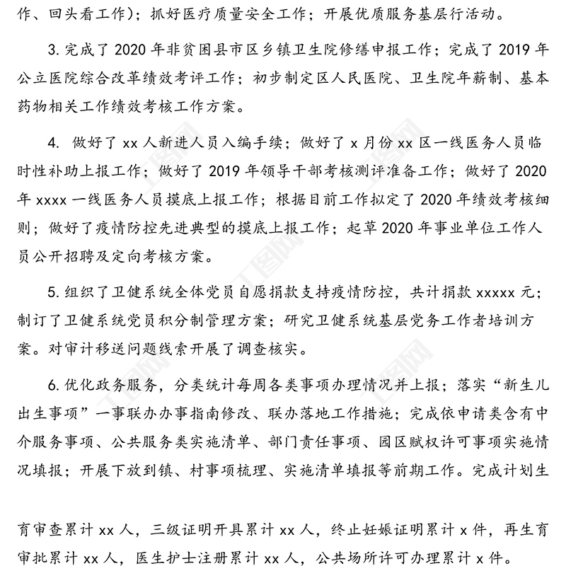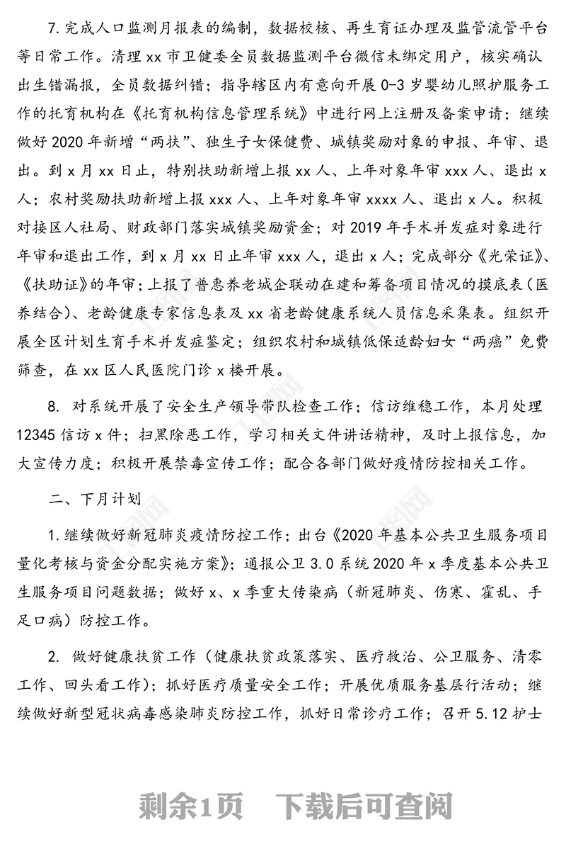 衛健局2020年x月小結和x月重點工作計劃(區縣)