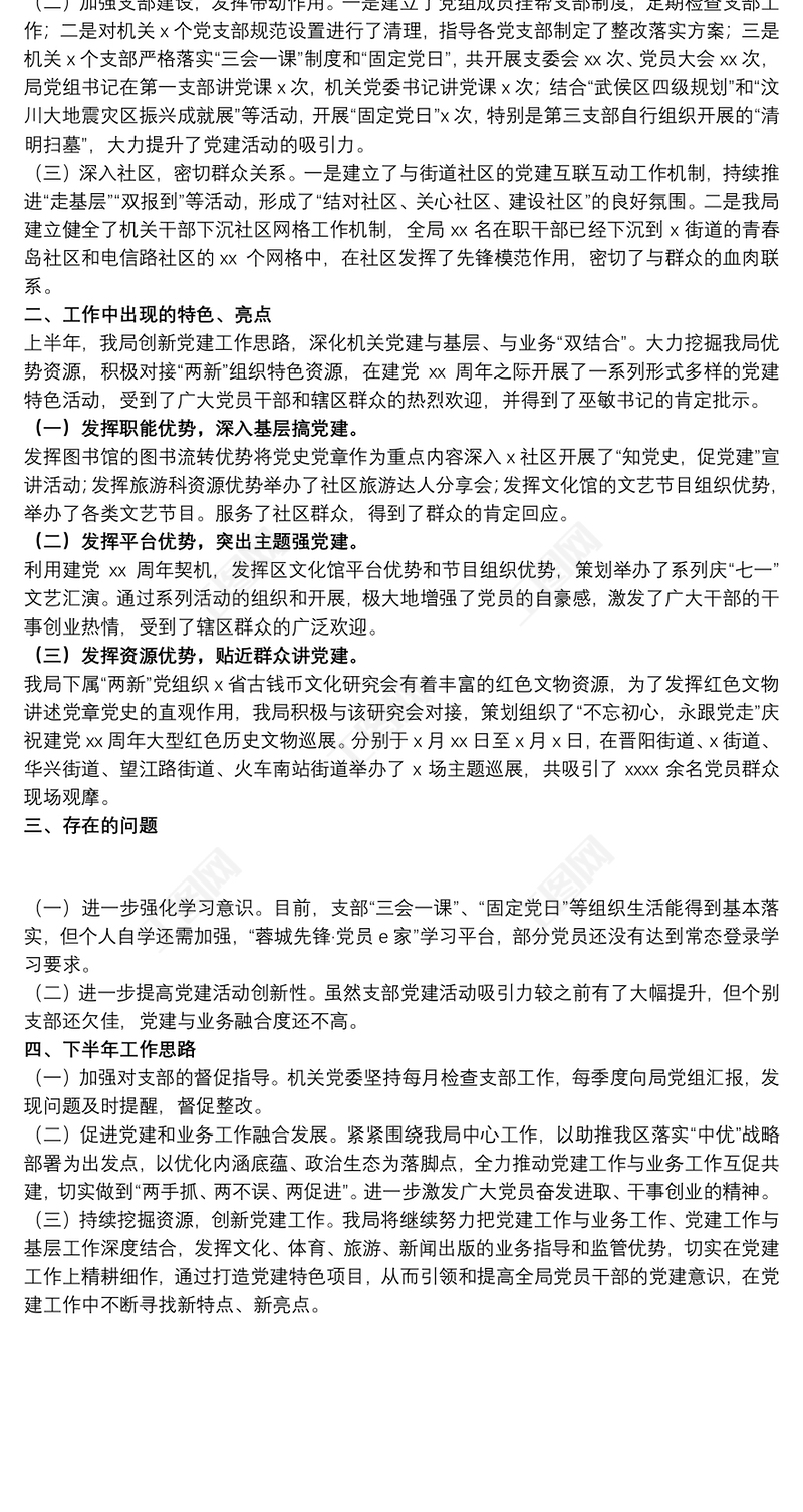 文化體育旅游局20xx年上半年機關黨建工作總結和下半年工作思路 Array
