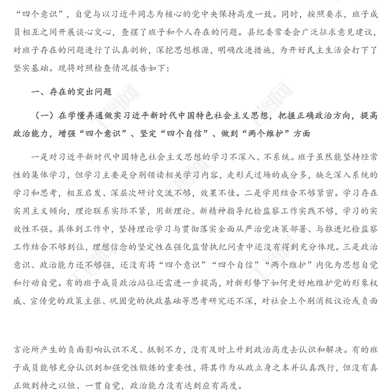 > 對(duì)照檢查 > X縣紀(jì)委監(jiān)委領(lǐng)導(dǎo)班子2020年度民主生活會(huì)圍繞“五個(gè)方面”對(duì)照檢查材料.DOCX 【圖片、文字、動(dòng)畫(huà)均可編輯】