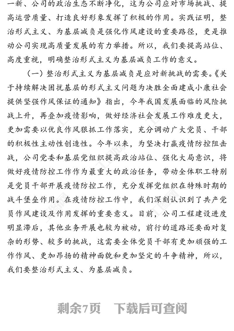 整治形式主義,打造過硬作風(fēng)——黨委書記在整治形式主義為基層減負專題會議上的講話,形式主義,公文范例,領(lǐng)導(dǎo)述職報告,機關(guān)公文寫作 Array