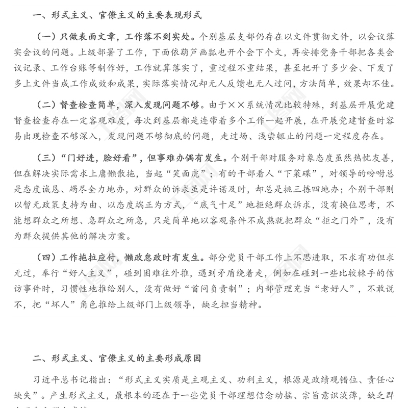 形式主義官僚主義問題民主生活會對照檢查材料包含
