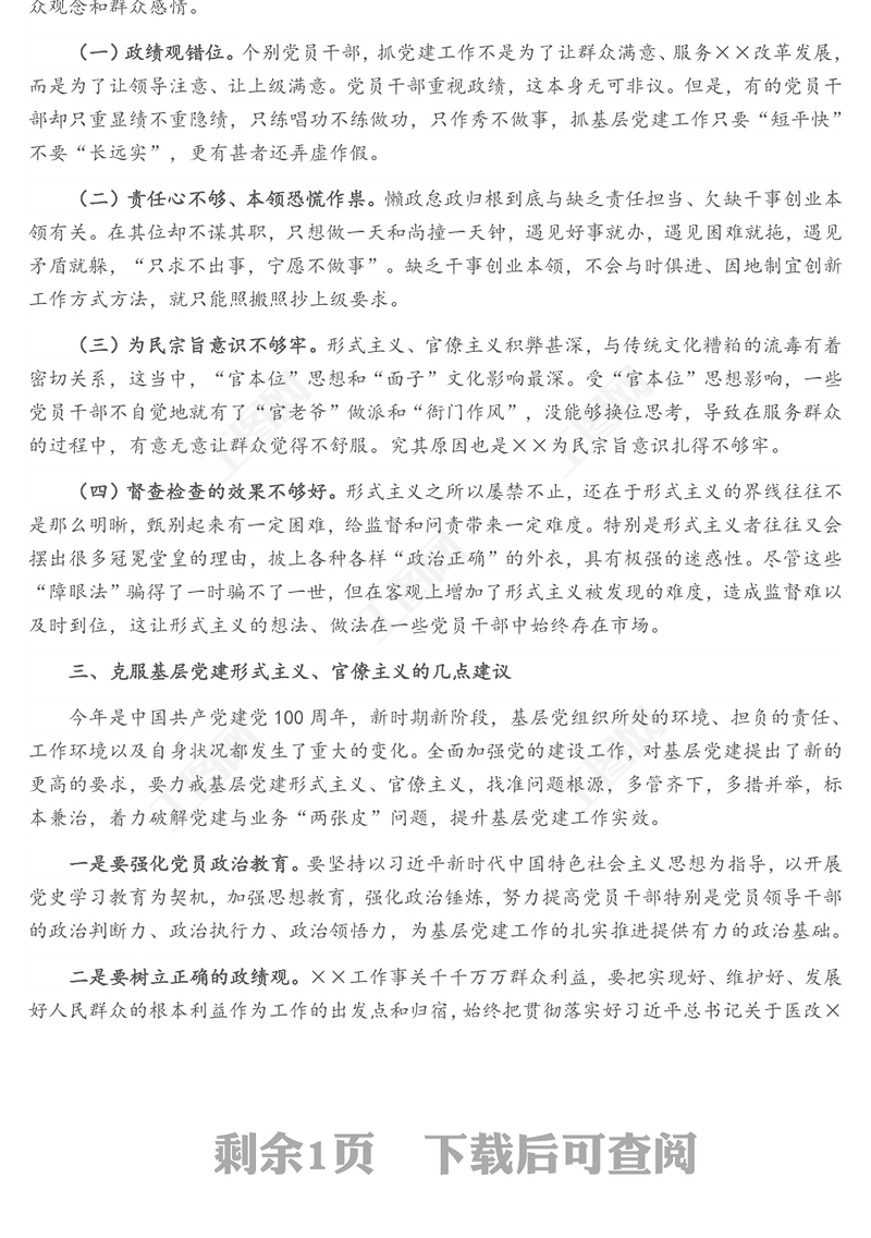 關于克服基層黨建形式主義、官僚主義問題的研究