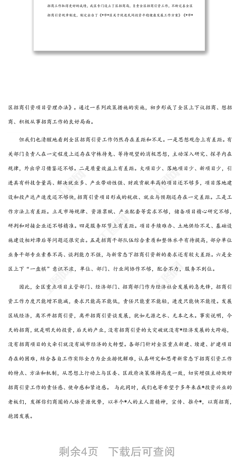 在全區招商引資“百日大會戰”動員大會上的講話包含