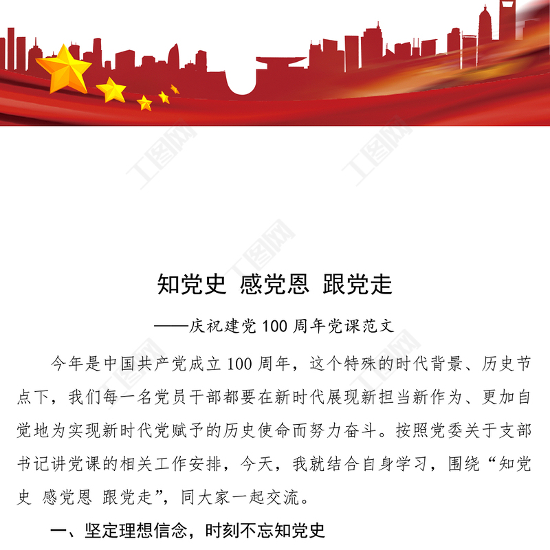 工圖網提供學黨史黨課知黨史感黨恩跟黨走學習黨史黨課講稿范文100周年黨課供會員免費下載。更多精彩黨課PPT素材,盡在工圖網。