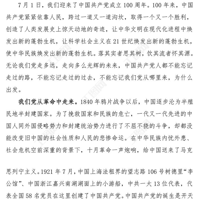 學黨史黨課知黨史感黨恩跟黨走學習黨史黨課講稿范文100周年黨課文章編號21030501 Array