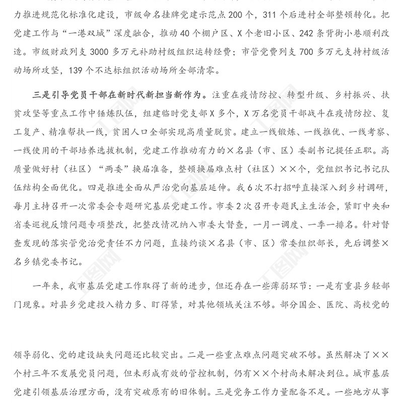 工圖網提供市委書記2020年抓基層黨建工作述職報告供會員免費下載。更多精彩黨課PPT素材,盡在工圖網。