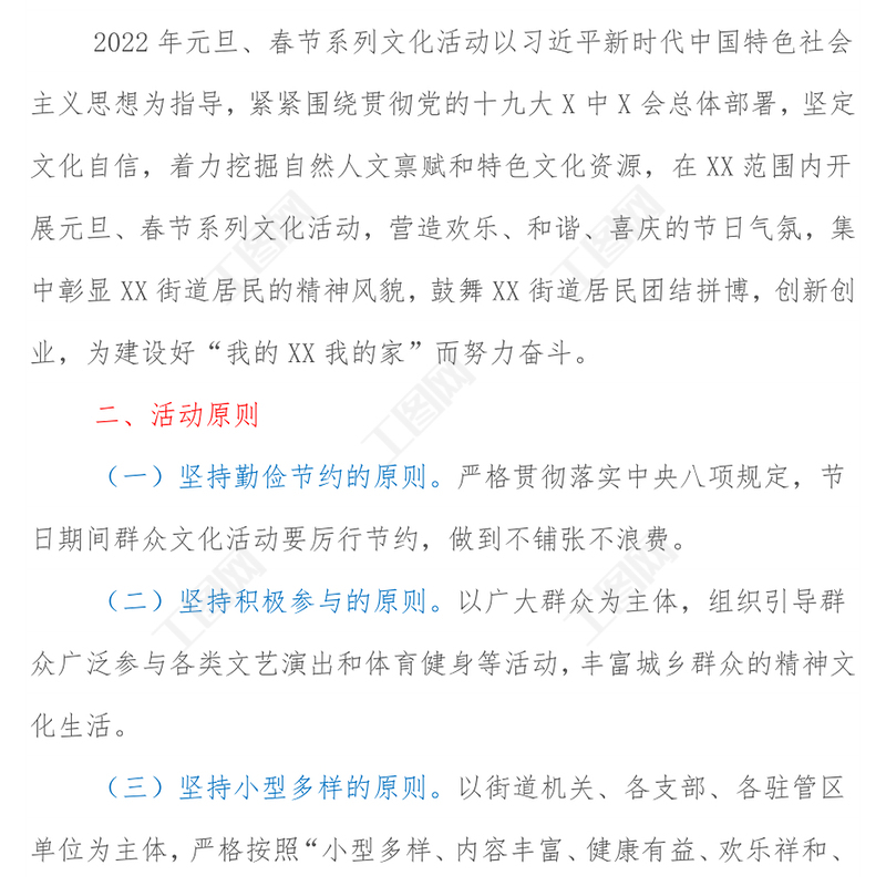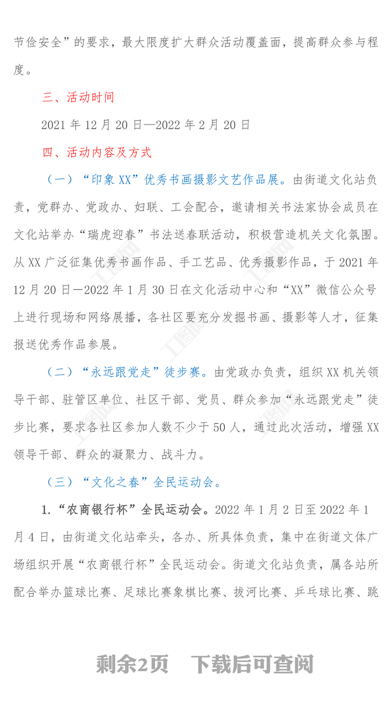 工圖網(wǎng)提供XX街道2022年元旦春節(jié)系列文化活動方案供會員免費下載。更多精彩黨課PPT素材,盡在工圖網(wǎng)。