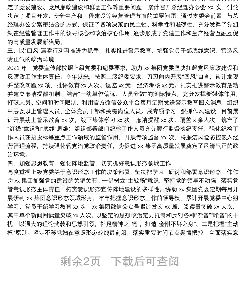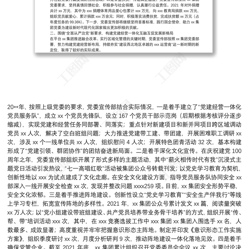 x國企集團2021年黨委宣傳部(黨群工作部)工作總結 Array