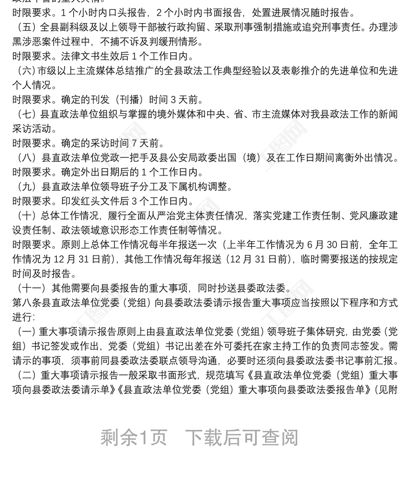 縣直政法單位黨委(黨組)向縣委政法委請示報告重大事項(xiàng)制度