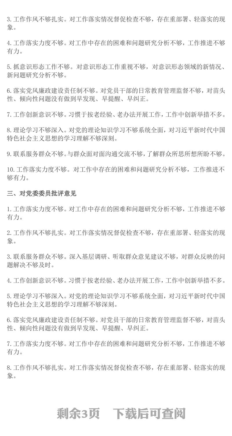 工圖網提供2024年民主生活會對照檢查批評與自我批評意見集錦范文供會員免費下載。更多精彩黨課PPT素材,盡在工圖網。