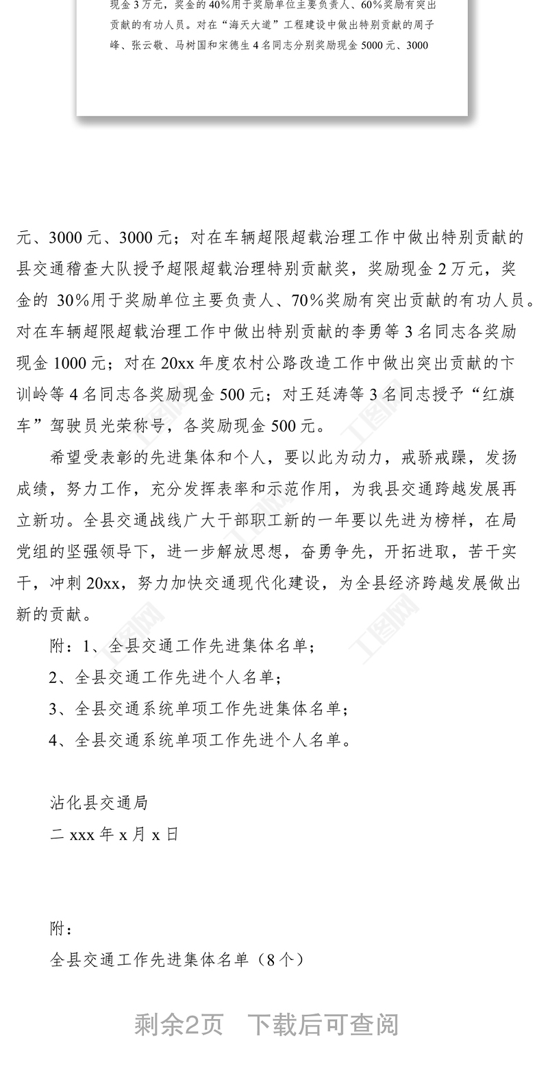 2021關(guān)于表彰全縣交通工作先進(jìn)集體和先進(jìn)個(gè)人的通報(bào)