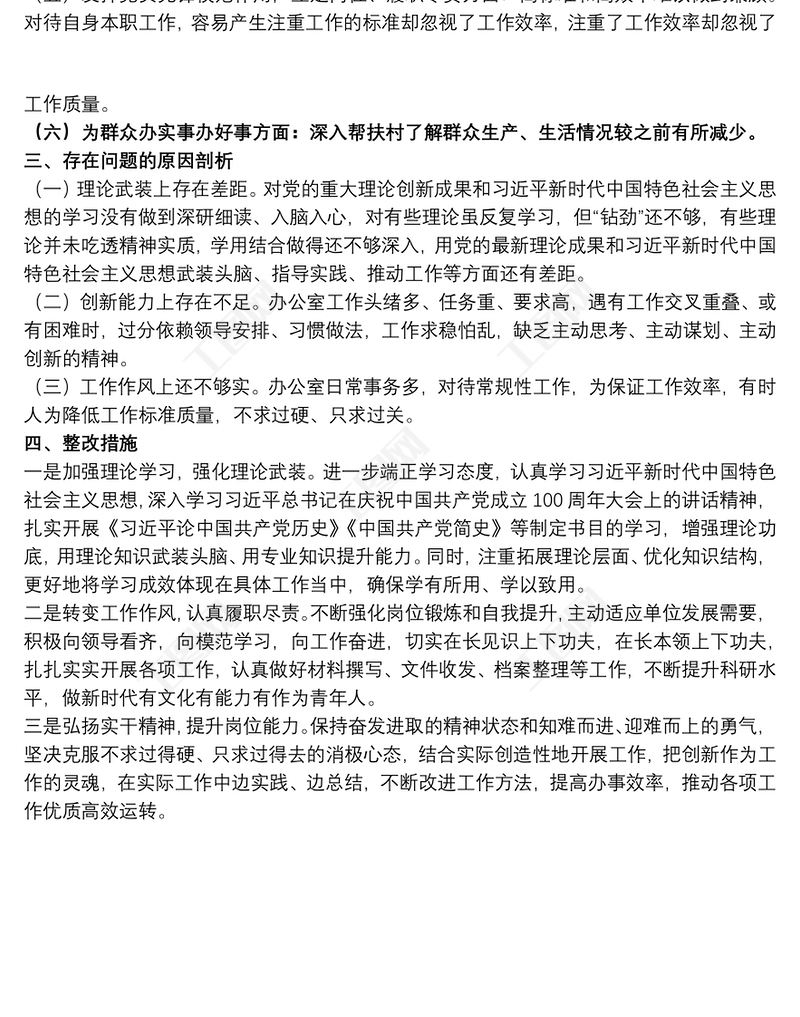 202120xx年青年教師在組織生活會個人對照檢查材料范文