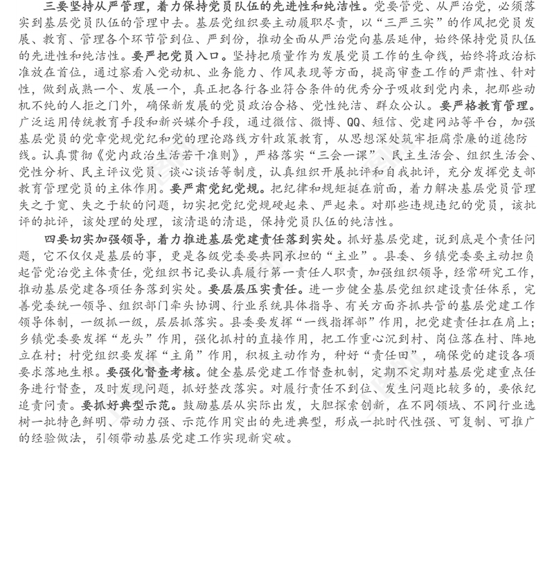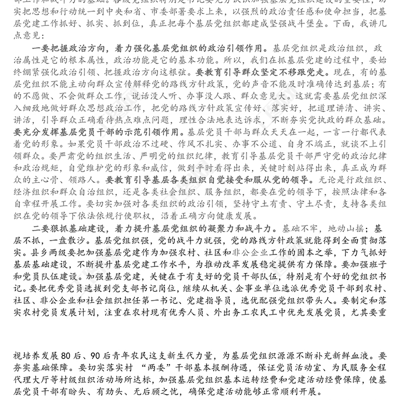 市委書記在基層黨建工作調(diào)研座談會(huì)上的講話