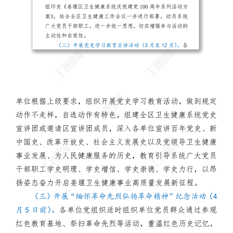 工圖網提供2021區衛生健康系統慶祝建黨100周年系列活動方案 (1)供會員免費下載。更多精彩黨課PPT素材,盡在工圖網。