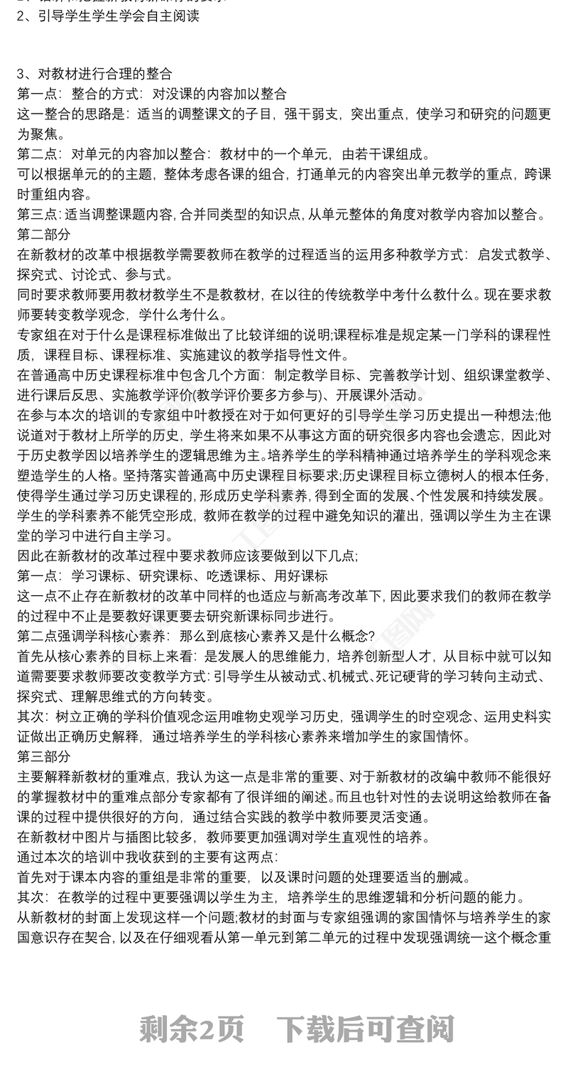 20xx年高中歷史統編教材培訓學習心得 Array