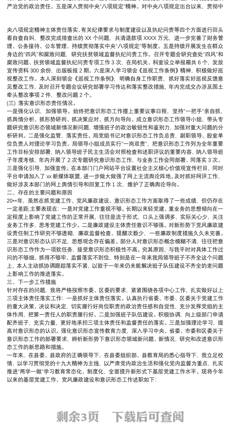 > 述職報(bào)告 > 基層黨建、黨風(fēng)廉政建設(shè)、意識(shí)形態(tài)工作述職報(bào)告.DOCX 【圖片、文字、動(dòng)畫(huà)均可編輯】