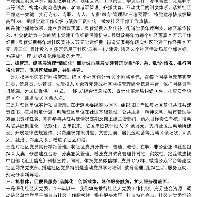關于城市基層黨建工作開展情況匯報(社區)包含