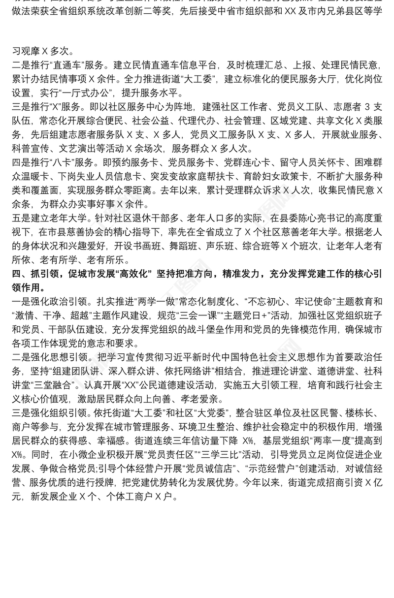 X市委組織部推進城市基層黨建工作情況匯報包含