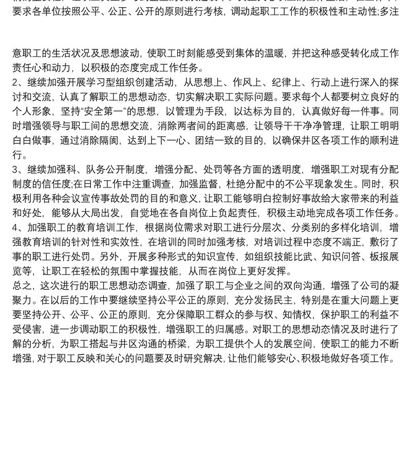 公司員工思想動態調研分析總結報告包含